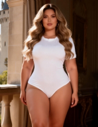 Home > Plus Size Teddy Supplier > White Simple Short Sleeves Open Crotch Bodysuit