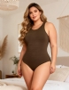 Home > Plus Size Teddy Supplier > Brown Simple Sleeveless Open Crotch Bodysuit