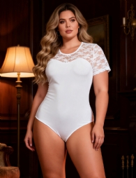 Home > Plus Size Teddy Supplier > White Sexy Swim Cloth Lace Short Sleeves Open Crotch Bodysuit