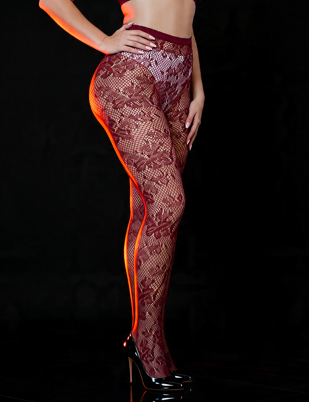 Home > Pantyhose Wholesale > Burgundy Sexy Vine Flower Fishnet Pantyhose