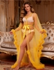 Home > Sexy Negligee > Hot Sale Yellow Long Sleeves Fur Nightgowns with Belt