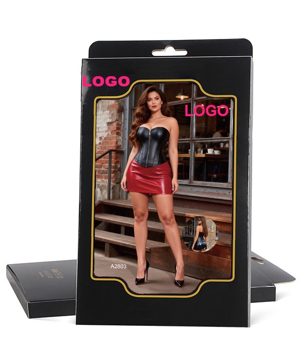 Product Name 14 Plastic Bones Black Faux Leather Waist Cincher