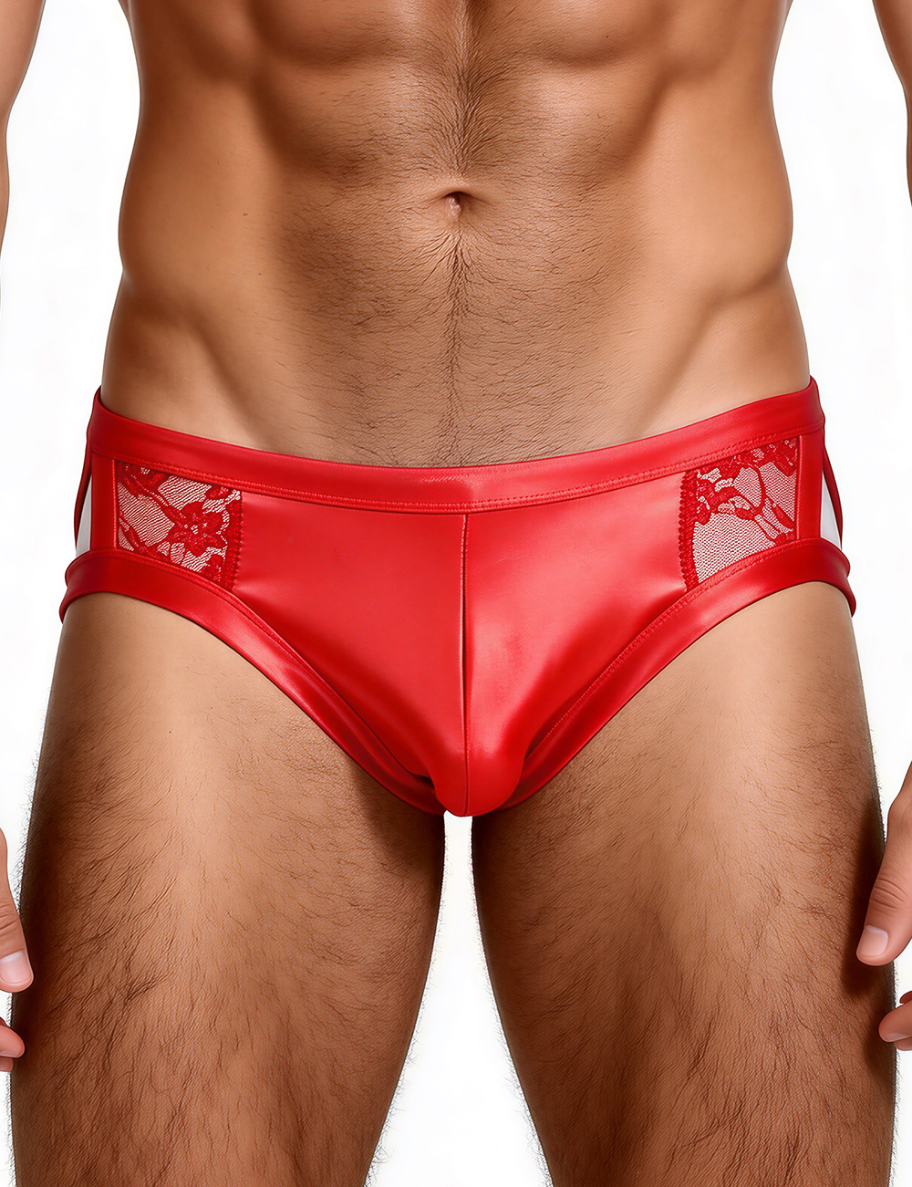 Home > Leather Men Underwear > Sexy Red Leather Lace Boxers For Man