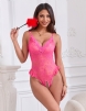 Home > Wholesale Sexy Teddy > Rose Red Sexy See Through Lace Ruffled Open Crotch Mesh Bodysuit