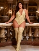 The R81021-5P by ohyeah company is a stunning Sexy Teddy that offers a variety of benefits to any woman who wants to feel confident and alluring. Let’s take a closer look at what this product has to offer. One of the main features of this Teddy is its delicate lace mesh fabric, which adds a touch of femininity and allure. The matching lace thigh-high stockings complement the fabric, further enhancing the overall look. Additionally, the material is comfortable and breathable, making it perfect for all-day wear. Another selling point of this Teddy is its halter-neck design, which features a deep V-neckline that exudes sensuality. The adjustable straps ensure a perfect fit, adding to the confidence and comfort of the wearer. The R81021-5P Teddy is available in six different colors, including black, white, red, green, yellow, and pink. This offers a variety of options that cater to different moods and personalities. One of the best aspects of this product is its plus size availability, ranging from S to 5XL. Ohyeah company understands the importance of inclusivity and values every woman, regardless of their size. Finally, this Sexy Teddy is versatile and can be worn on its own or paired with other lingerie pieces. It can be worn with a matching lace bra and panties, or a sheer robe or silky dressing gown for a more seductive look. In conclusion, the R81021-5P Sexy Teddy from ohyeah company is a fantastic addition to any lingerie collection. With its delicate lace mesh, halter-neck design, range of colors, and plus size availability, this product is perfect for any woman who wants to feel confident, sexy, and beautiful.