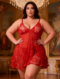 Home > Wholesale Plus Size Lingerie > Sexy Transparent V Neck Plus Size Red Lace Short Nightdress