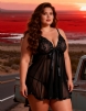 Home > Wholesale Plus Size Lingerie > Black Red Sexy Rhinestone Plus Size See-through Nightdress