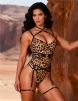 Main keywords: leopard print, printed mesh, underwire, clasp, multiple adjustable straps, bondage.