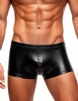 Standard product name: Black, faux leather fabric, front U-shaped pouch design, M-2XL, men`s sexy faux leather boxer shorts.