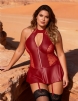 Home > Wholesale Plus Size Lingerie > Red Halter PU Leather Lace Sexy Garter Lingerie