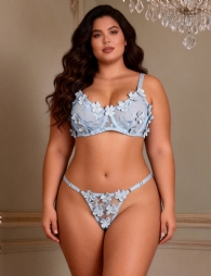 Home > Bra & Bra Sets Supplier > Blue Sexy Floral Mesh Embroidery Lace Bra Set