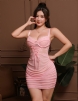 Standard Product Name: Available in pink and purple, lightweight mesh and lace, cross strap design in the front, heart-shaped bow accent, padded bust with underwire for lift and support, adjustable bust size, widened shoulder straps, adjustable shoulder straps, sizes M-3XL, women`s sexy camisole sleep dress.