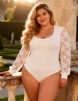 Home > Wholesale Plus Size Lingerie > Black Long Sleeve Openable Crotch Mesh Bodysuit