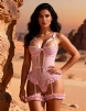1. Mesh + lace, beautiful and sexy; 2. Steel ring at the chest, back buckle design, adjustable bust; 3. Hollow design in the front and back, fiery temptation; 4. Lace ruffle trim at the leg openings, playful and cute; 5. Adjustable garter straps with non-removable lace leg rings, uniquely stylish; 6. Opening buckle design in the crotch area, convenient for wearing and removing.