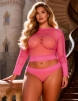 Home > Plus Size BodyStockings Wholesale > Black Long Sleeve Two-Piece Bodystocking With Fishnet Crop Top And Bottom