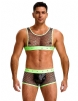 Standard product name: Green, fishnet fabric, front U-shaped pouch design, wide waistband with studded elastic, hollow back and buttocks, M-2XL, men`s sexy lingerie set.
