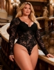 Home > Plus Size Teddy Supplier > Black Sexy Lace Deep V Neck Long Sleeves Open Crotch Bodysuit