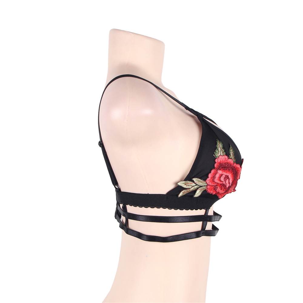 Product Name Rose Embroidery Black Double Caged Bralette