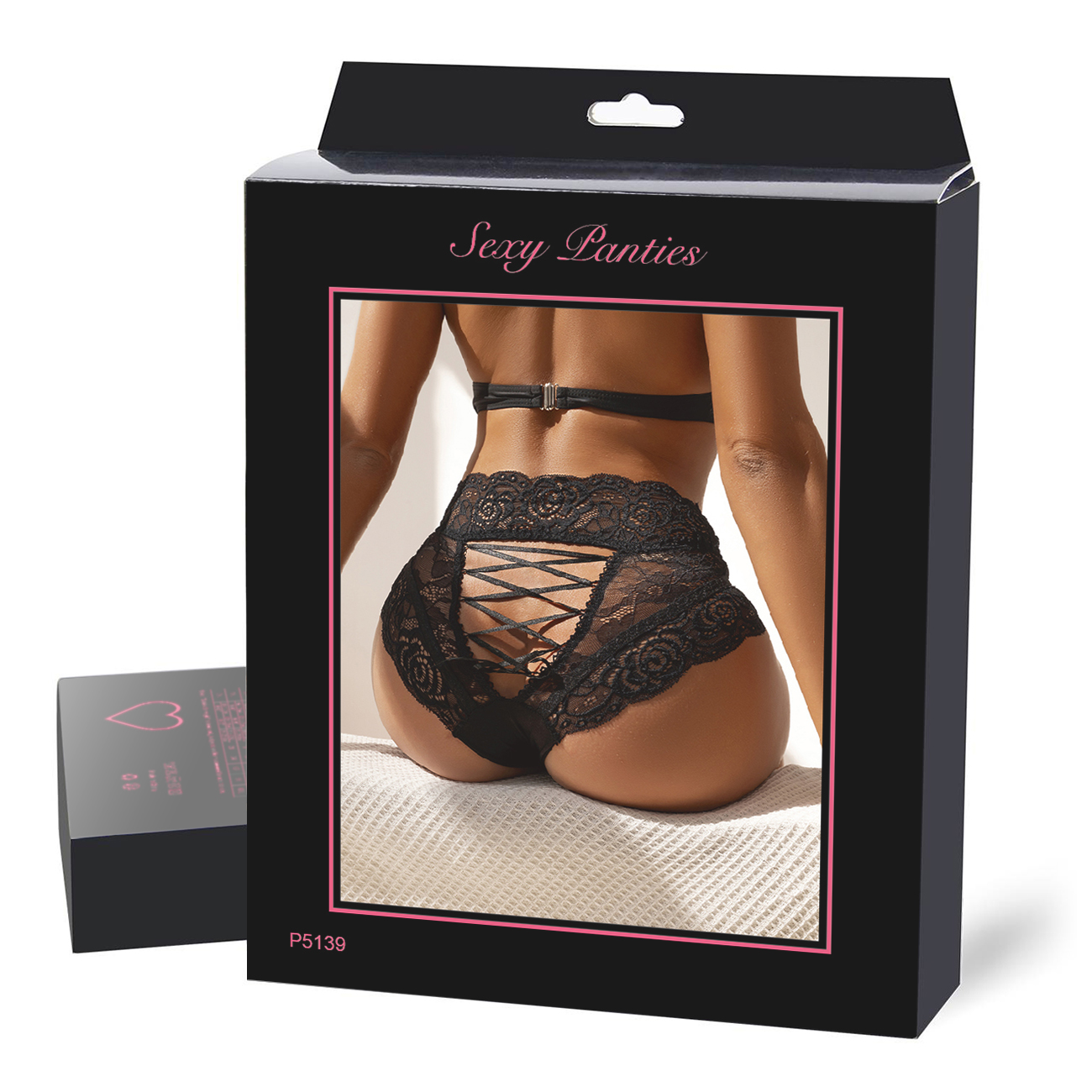 Home > Plus Size Panties > Plus Size Sexy Black High Waist Lace Strappy Panty