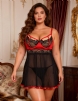 Home > Wholesale Plus Size Lingerie > Plus Size Sleepwear with Underwire Black Red Short Lace Nightdress