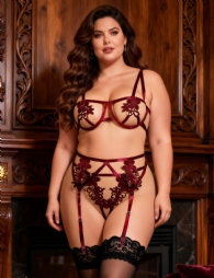 Home > Plus Size Bra Wholesale > Plus Size Sexy 3pcs Red Embroidery Applique Bra Panty Set With Underwire