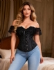 Home > Wholesale Corsets > Black off Shoulder 12 Pieces Plastic Bones Lace Corsets with Panties