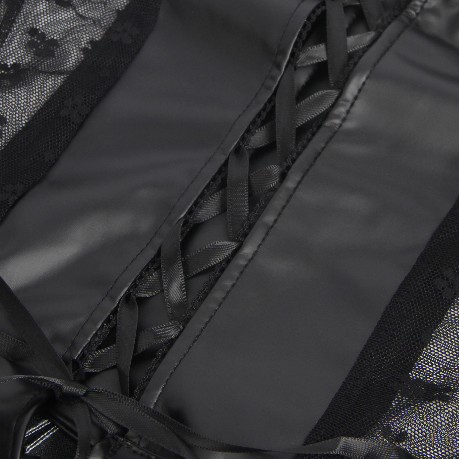 1. PU leather fabric, lace mesh splicing at the waist sides, fashionable and beautiful;