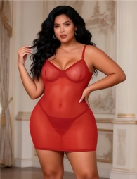 Home > Wholesale Plus Size Lingerie > Red Sexy Mesh Strappy Lingerie With A Lace-Up Back