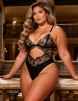 Home > Plus Size Teddy Supplier > Black Sexy Hollow Cut Lace See Through Teddy Lingerie