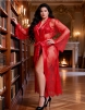 Home > Wholesale Plus Size Lingerie > Red Sexy Lace Satin Mesh Long Nightgown With Belt