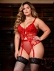 Home > Plus Size Teddy Supplier > Red Sexy Embroidery Lace Hollow Suspender Bodysuit