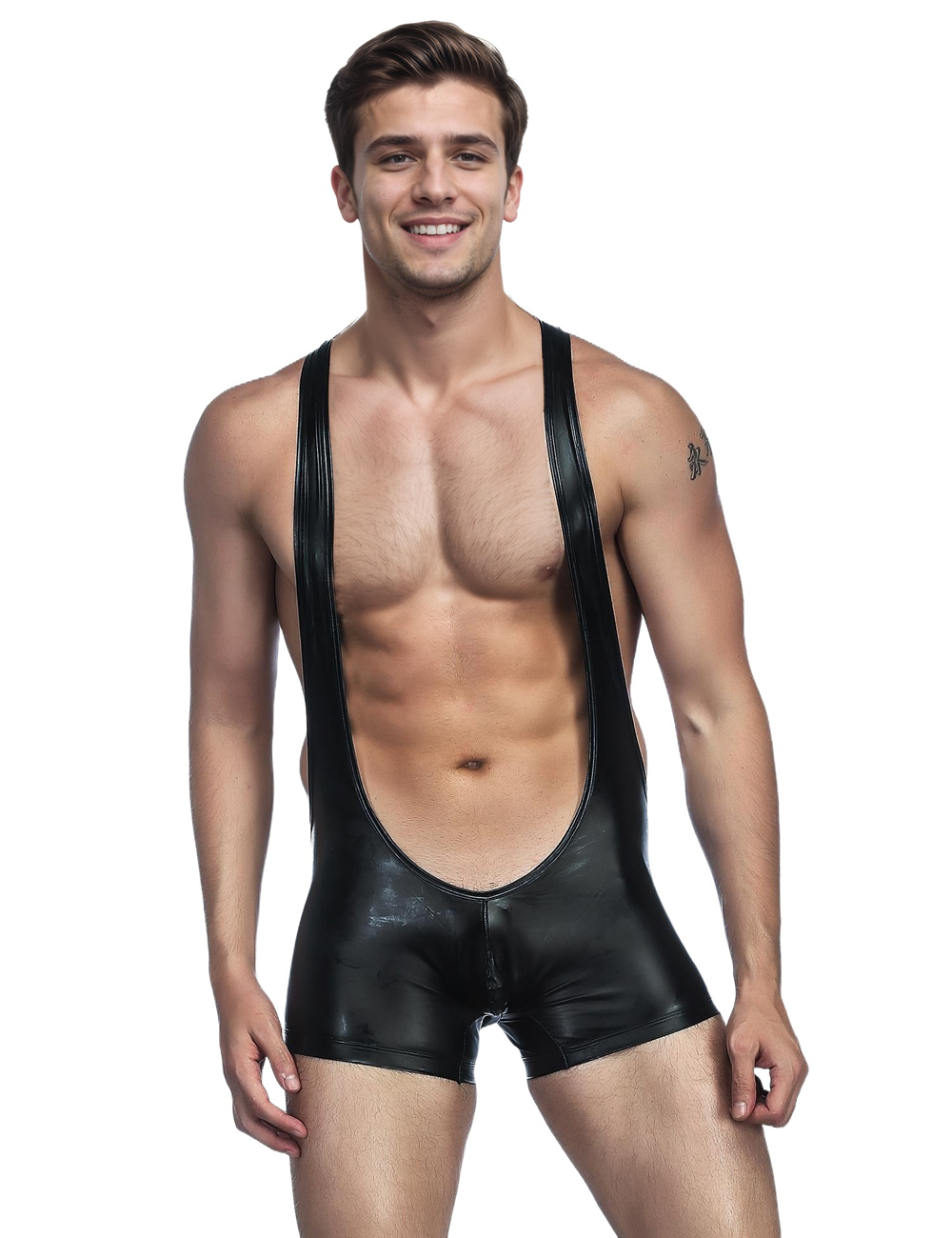 Home > Wholesale Lingerie for Men > Black Sexy PU Leather Men Bodysuit Underwear