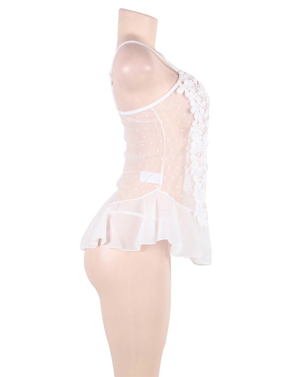 Product Name Plus Size White Stereoscopic Flower Lace Babydoll
