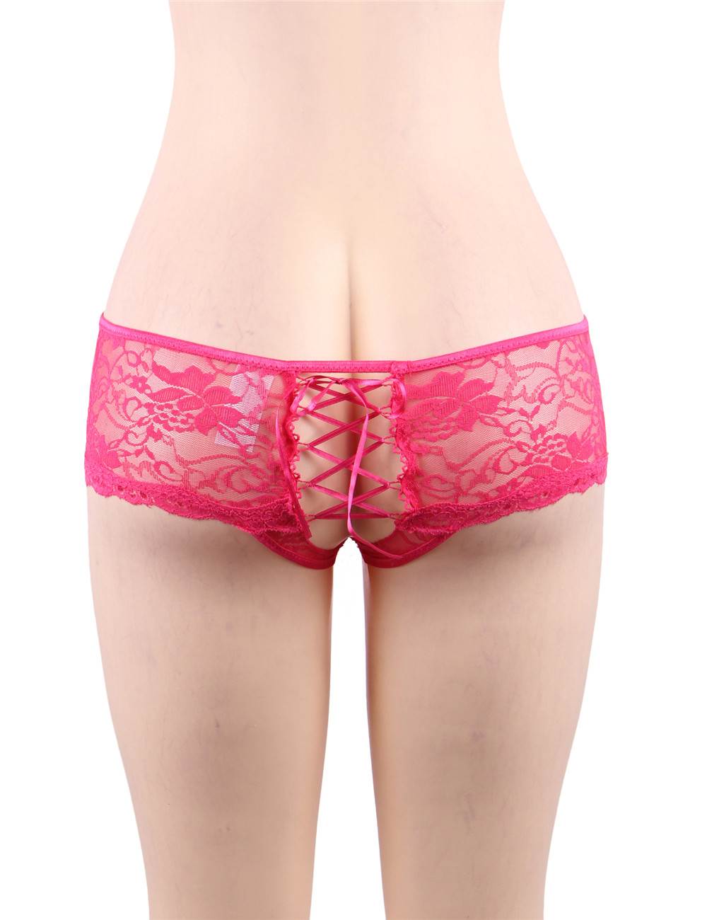 Home > Plus Size Panties > Plus Size Pink Open Crotch Floral Lace Panty